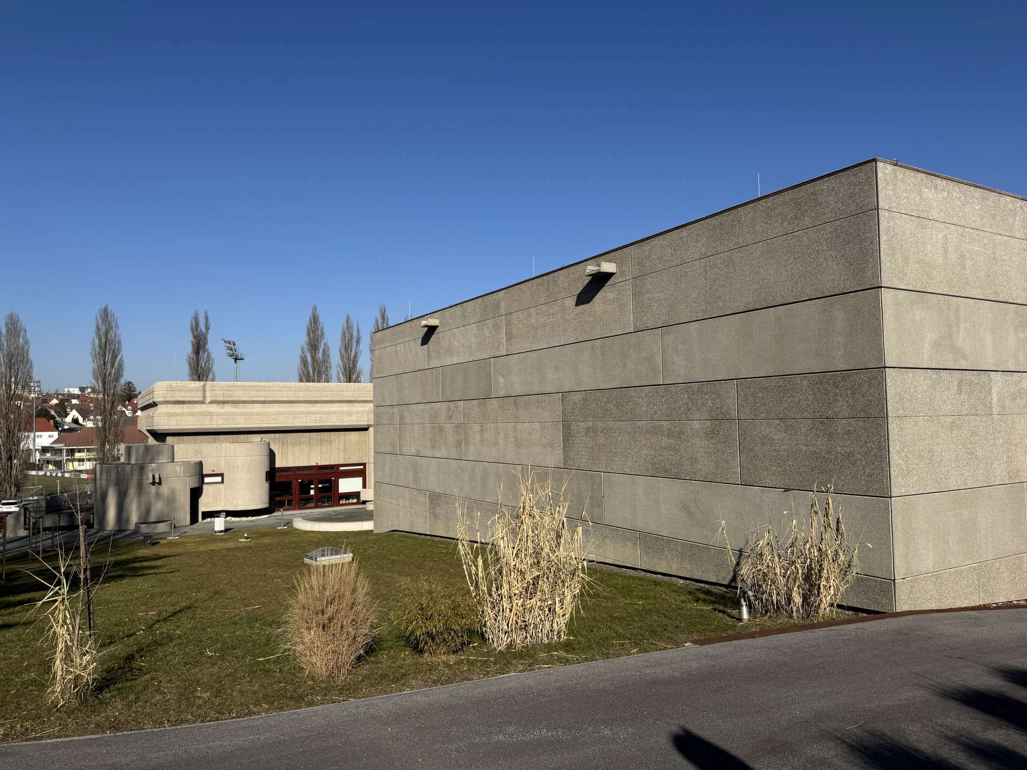 Das Kulturzentrum Mattersburg ist ein herausragendes Beispiel für die nachhaltige Sanierung eines denkmalgeschützten Bestandsbaus aus den 1970er-Jahren – und kombiniert somit sanierten Brutalismus mit zeitgenössischer, nachhaltiger Betonarchitektur.